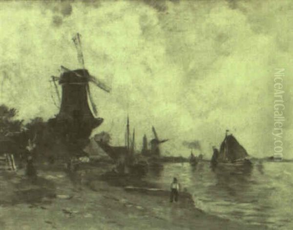 Hollandische Kustenlandschaft Mit Windmuhlen