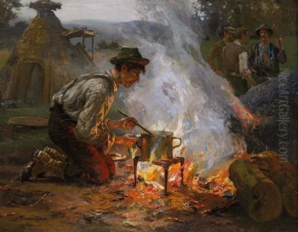 Bring the timeless beauty of Ernst Albert Fischer's Am Lagerfeuer into your home with a handmade oil painting reproduction. Carefully recreated on canvas by skilled artists using traditional techniques, this piece captures the delicate brushwork, subtle light, and vibrant color of the original masterpiece. With museum-level quality and rich texture, it brings elegance and artistic depth to any space. Enjoy free shipping and make this masterpiece a part of your personal collection.