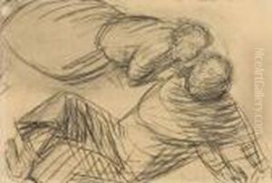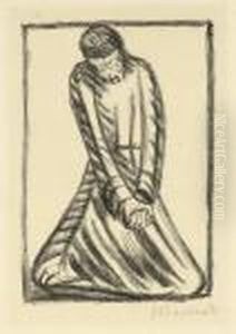 Kniende Mutter Am Bette Des Schlafenden Sohns