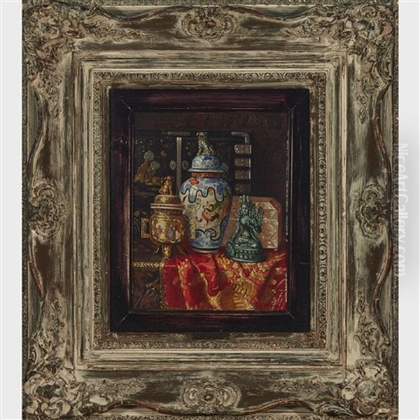 Still Life With Oriental Porcelains And Cabinet