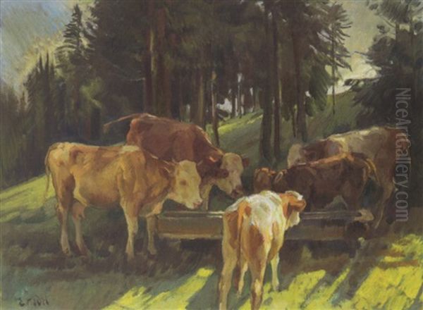 Bring the timeless beauty of Ernst Hodel the Younger's Kuhe An Der Tranke into your home with a handmade oil painting reproduction. Carefully recreated on canvas by skilled artists using traditional techniques, this piece captures the delicate brushwork, subtle light, and vibrant color of the original masterpiece. With museum-level quality and rich texture, it brings elegance and artistic depth to any space. Enjoy free shipping and make this masterpiece a part of your personal collection.