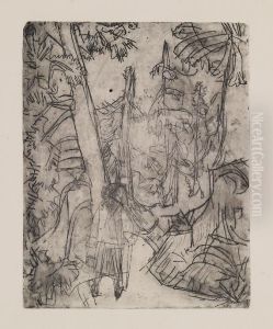 Artist Sketching with Two Women; Artists