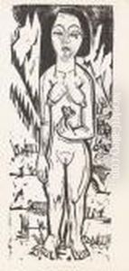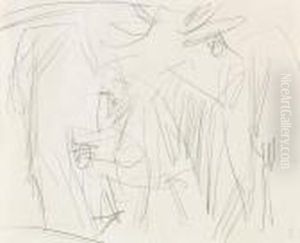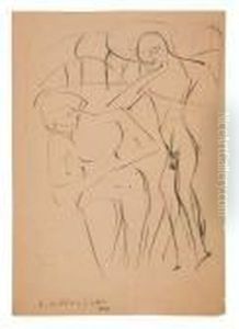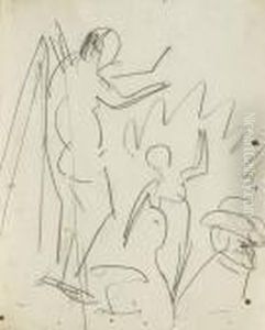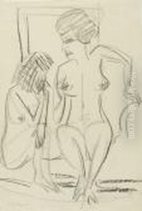 Kirchner, Ernst-ludwig: Three Female Nudes.charcoal On Paper. Estate Stamp. - Minimally Stained. Pinholes.lower Sheet Edge Cut