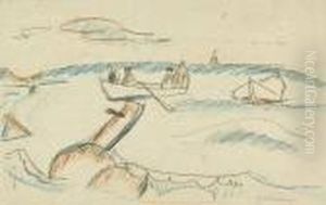 Boot Und Drei Figuren An Der Kuste Von Fehmarn