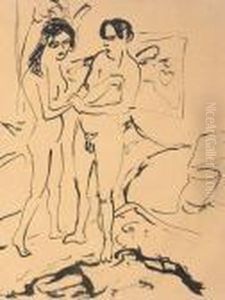 Zwei Badende Im Atelier