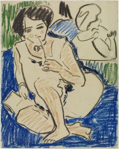 Desnudo de rodillas ante un biombo rojo (reverso: Desnudo sentado con pierna doblada)