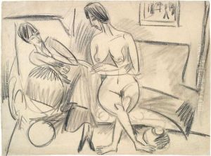 Nackte Frauen Am Ofen - Zwei Nackte Frauen Im Atelier