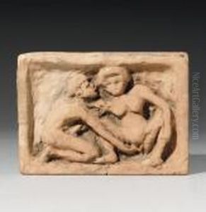Sitzendes, Nacktes Paar, Sich Umarmend