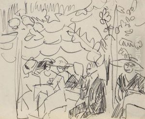 Gruppe Badender Am Strand (group Of Bathers On The Beach)