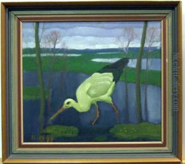 Stork. Oil Painting by Ernst Norlind