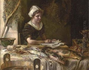 Eine Junge Fischverkauferin Macht Sich Notizen