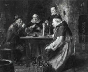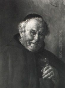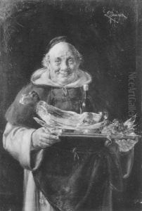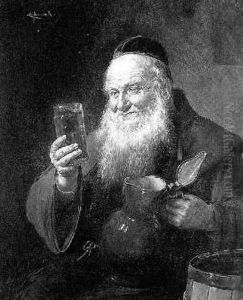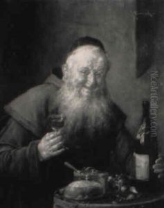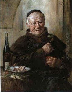 Monch Beim Nadelfadeln Mit Zierdecke Und Weinkrug