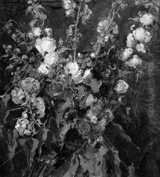 "stockrosen". Sign. Ol Auf Lwd. Auf Karton. 73 X 65 Cm. Rahmen