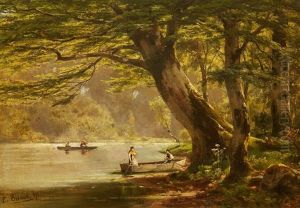 Landschaft Bei Berchtesgaden Mit Angler Am Flussbett.