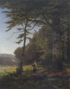 Sommertag Im Gebirge. Bauersleut Vor Einsamer Kate Am Waldesrand