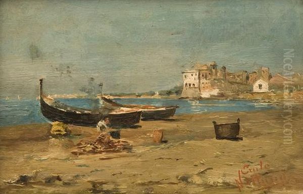 Veduta Di Nettuno Con Pescatori E Barche A Riva