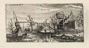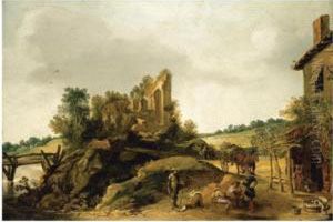 An Extensive Landscape With Soldiers Resting By A Tavern, A Horseand Cart And Other Figures On A Road And A Ruin On A Hilltopbeyond