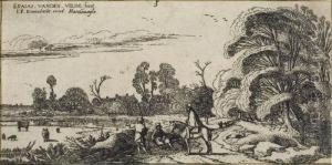 Wooded Landscape With Riders Approaching A Group Of Gypsies