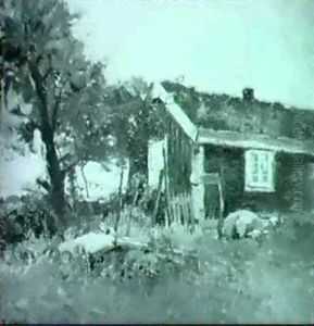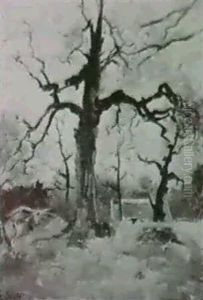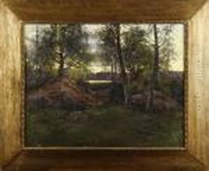 'bergslagsgard Vinter'. Signerad Och Betecknad Hogfors. Duk, 53x60