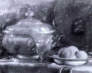 Stilleben Med Krus, Glas Och Frukter