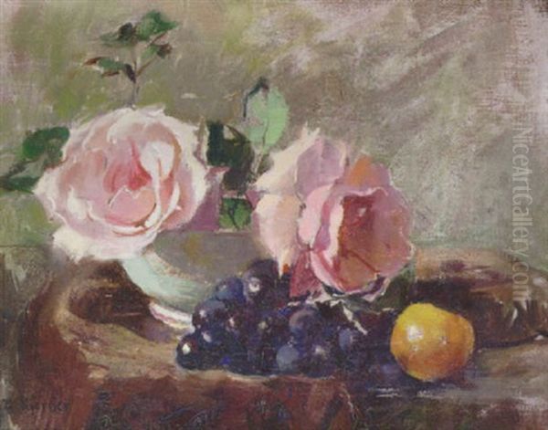 Stilleben Med Rosa Rosor Oil Painting by Esther Kjerner