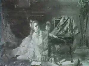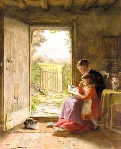 The Reading Lesson Oil Painting by Etienne Adolphe Piot