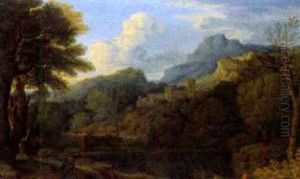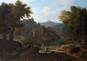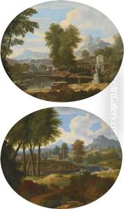 Etienne Allegrain was a French landscape painter who was born in Paris in 1644. He was most prominently known for his portrayal of classical and idealized landscapes that were heavily influenced by the works of his predecessors, such as Nicolas Poussin and Claude Lorrain. Allegrain's landscapes typically featured pastoral scenes with ancient ruins, bathed in a soft, golden light that imparted a dreamlike quality to his work.