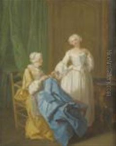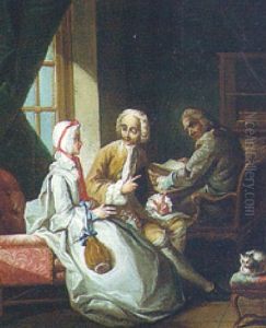 A Pantry With A Gentleman Writing A Letter With A Maid (+ An Interior With A Gentleman Visiting A Seamstress, Smaller; Pair)