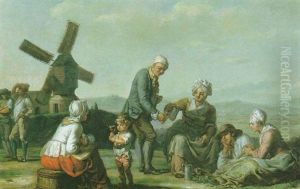 A Country Market Scene With A Maid Overturning A Basket Of Eggs (+ A Market Scene With Peasants Drinking And Music-making At A Table; Pair)