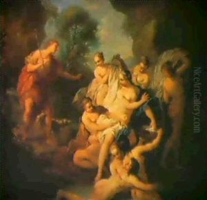 Amoretten, Diana Und Flora Entzunden Mit Einem Brennspiel Eine Fackel - Allegorie Des Feuers