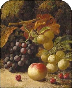 Roses, Peaches, A Basket Of Raspberries And Other Fruit By An Urn