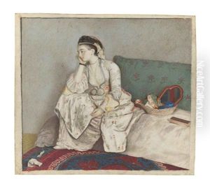 Portrait Of A Lady Of Constantinople Seated On A Red Divan