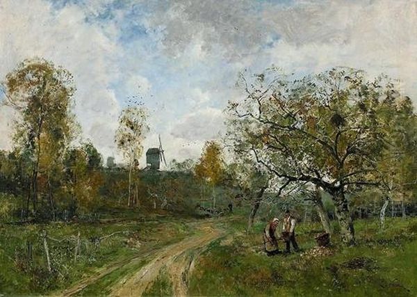 Bauern Bei Der Apfelernte In Hollandischer Landschaft.