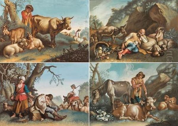 Giovane Pastore Con Giovenca, Capre E Una Pecora