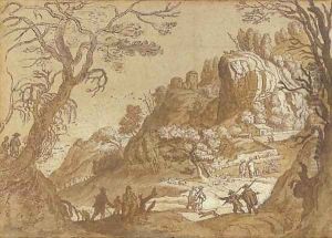 Mediterranean Landscape With Peasants And Animals At A Well.