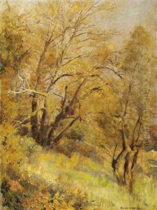 Wald Mit Jungen Birken In Der Herbstsonne