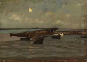 Boote Am Ufer Bei Mondschein