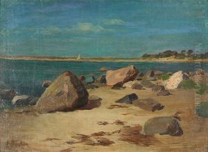 Kustenlandschaft Mit Untergehender Sonne