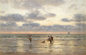 Ostseefischer Am Abendlichen Strand