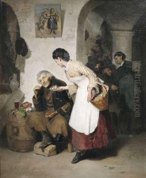 Bring the timeless beauty of Eugen Hofmeister's In Front Of A Hostelry. A Lady Giving Flowers To A Mendicant. into your home with a handmade oil painting reproduction. Carefully recreated on canvas by skilled artists using traditional techniques, this piece captures the delicate brushwork, subtle light, and vibrant color of the original masterpiece. With museum-level quality and rich texture, it brings elegance and artistic depth to any space. Enjoy free shipping and make this masterpiece a part of your personal collection.