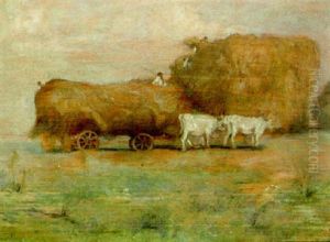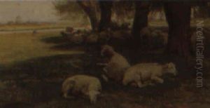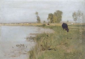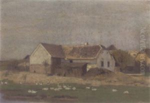 River Landscape With Weavers Nests And A Farmhouse On The Bank