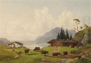 Uferlandschaft Mit Kuhen
