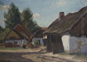 Reetgedeckte Bauernkaten An Einem Dorfweg