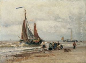 Hollandische Kustenlandschaft Mit Schiffen An Der Mole