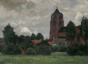 Kirchdorf In Flandrischer Landschaft, Vorn Eine Bauerin Auf Kleinem Feldweg