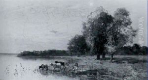 Huterbuben Mit Kuhen Am Seeufer