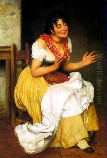 Bring the timeless beauty of Eugen von Blaas's Neapoletanisches Madchen into your home with a handmade oil painting reproduction. Carefully recreated on canvas by skilled artists using traditional techniques, this piece captures the delicate brushwork, subtle light, and vibrant color of the original masterpiece. With museum-level quality and rich texture, it brings elegance and artistic depth to any space. Enjoy free shipping and make this masterpiece a part of your personal collection.