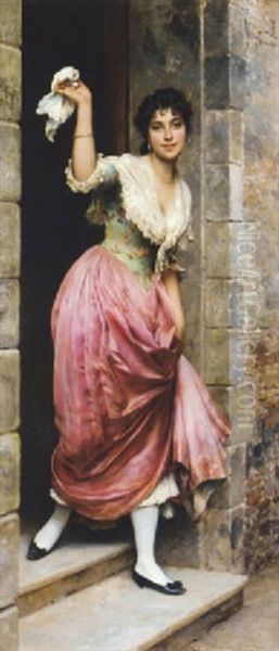 Bring the timeless beauty of Eugen von Blaas's The Farewell into your home with a handmade oil painting reproduction. Carefully recreated on canvas by skilled artists using traditional techniques, this piece captures the delicate brushwork, subtle light, and vibrant color of the original masterpiece. With museum-level quality and rich texture, it brings elegance and artistic depth to any space. Enjoy free shipping and make this masterpiece a part of your personal collection.