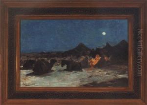 Desert Caravan Encampment By Moonlight