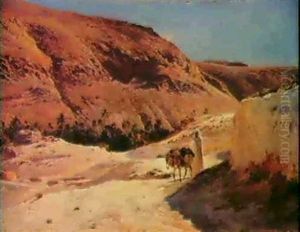 Washerwomen And A Man On A Donkey In A North-african Landscape